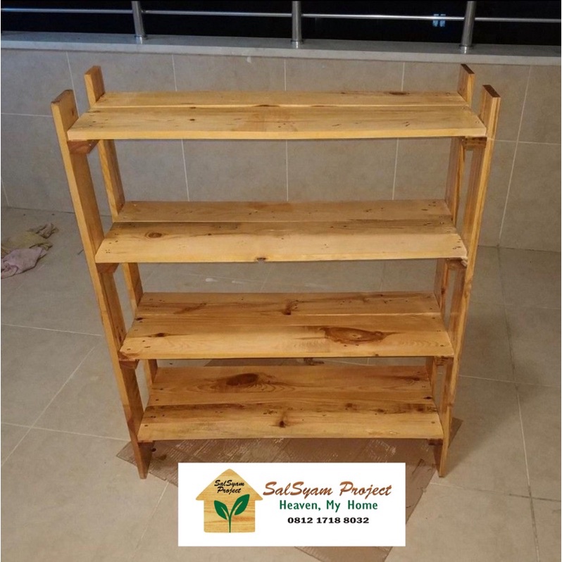 Jual Rak Sepatu Rak Cupang Rak Helm Rak Tanaman Kayu Papan Jati Belanda Ex Pallet 4 Susun Tingkat Murah Shopee Indonesia